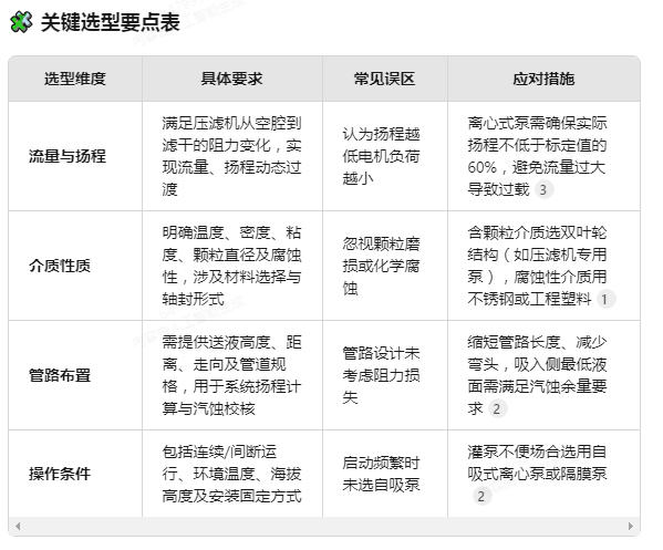 压滤机进料泵需匹配“初期大流量低扬程、末期小流量高扬程”的动态需求,因此选型需综合以下关键因素: